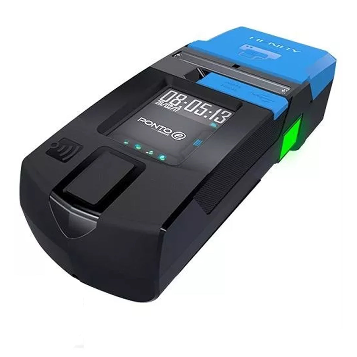 TOTALMENTE VERSÁTIL: Ponto E é o controle de ponto que faltava. Acompanha a bateria interna com autonomia para mais de 300 tickets.